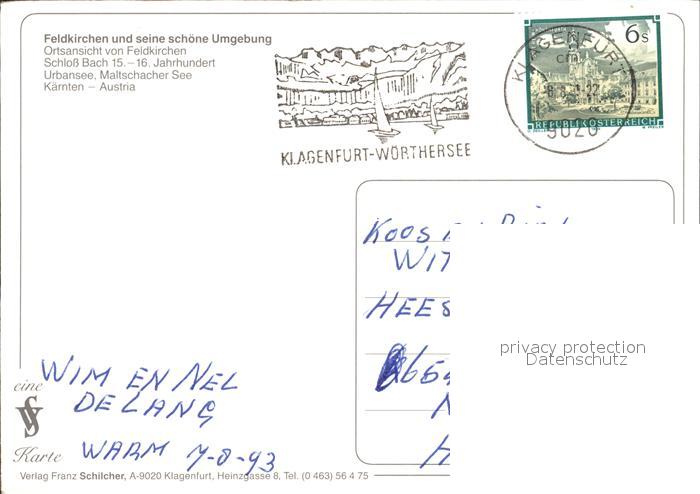 72090933 alte Postkarte Feldkirchen Kaernten Gesamtansicht Schloss Bach Urbansee Maltschacher See postalisch gelaufen Erhaltung siehe scans KatCode: 11390212021002