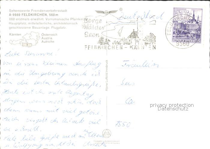 72051615 alte Postkarte Feldkirchen Kaernten mit Waiern und Gurktaler Alpen Fliegeraufnahme postalisch gelaufen Erhaltung siehe scans KatCode: 11390212021002