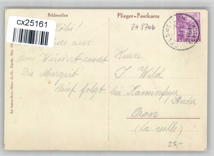10753392 alte Postkarte Feldmeilen Fliegeraufnahme postalisch gelaufen KatCode: 11470260895370