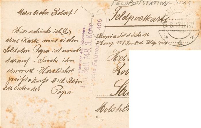 73963541 alte Postkarte Feldpost-Motiv WK1 Soldaten postalisch gelaufen Erhaltung siehe scans [SanaeD93] KatCode: 22300000003400