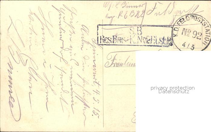 31738256 alte Postkarte Feldpost-Stempel WK1 92 Frankreich postalisch gelaufen KatCode: 22300000003300