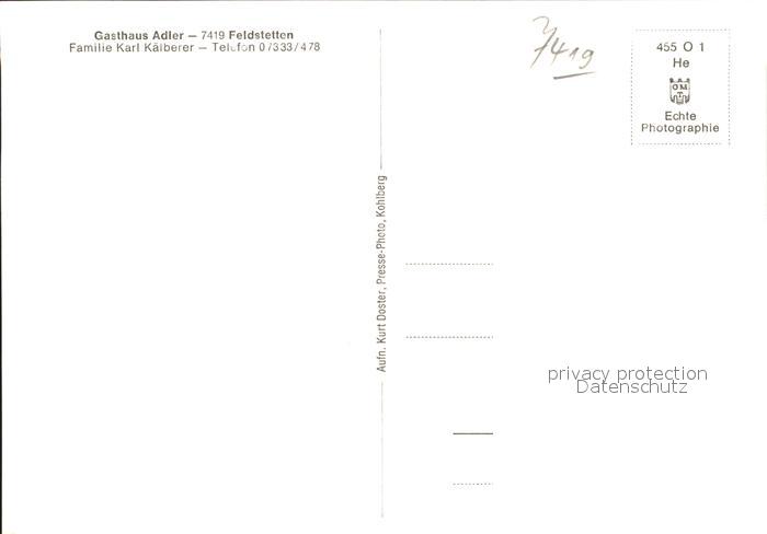 41760748 Feldstetten Gasthaus Adler Karl Kaelberer postalisch nicht gelaufen Erhaltung siehe scans KatCode: 11110008425071