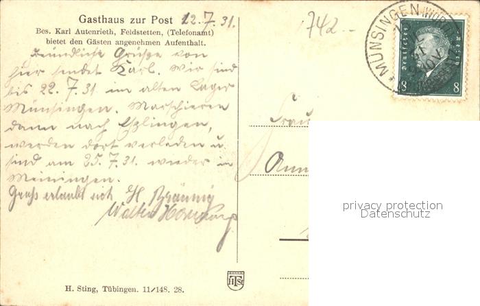 32158001 alte Postkarte Feldstetten Stadtansicht postalisch gelaufen Erhaltung siehe scans KatCode: 11110008425071