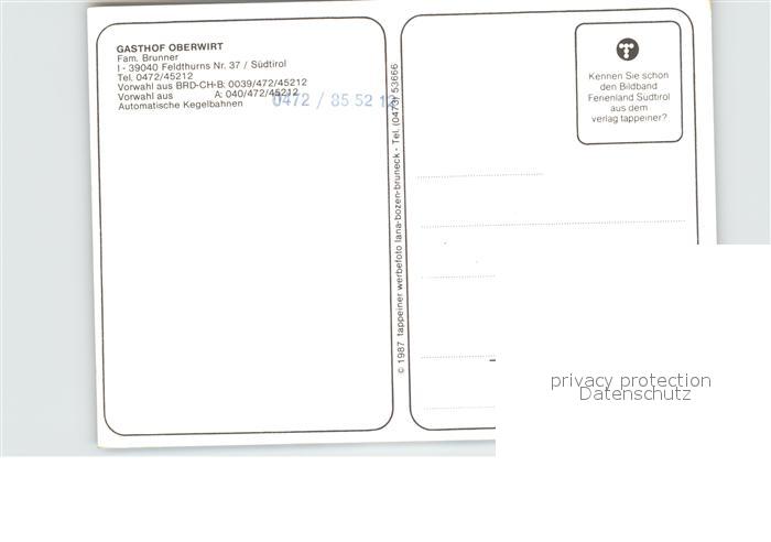 Feldthurns Gasthaus Oberwirt postalisch nicht gelaufen Erhaltung siehe scans