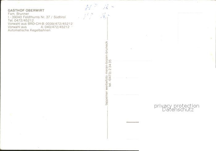 Feldthurns Gasthof Oberwirt postalisch nicht gelaufen Erhaltung siehe scans