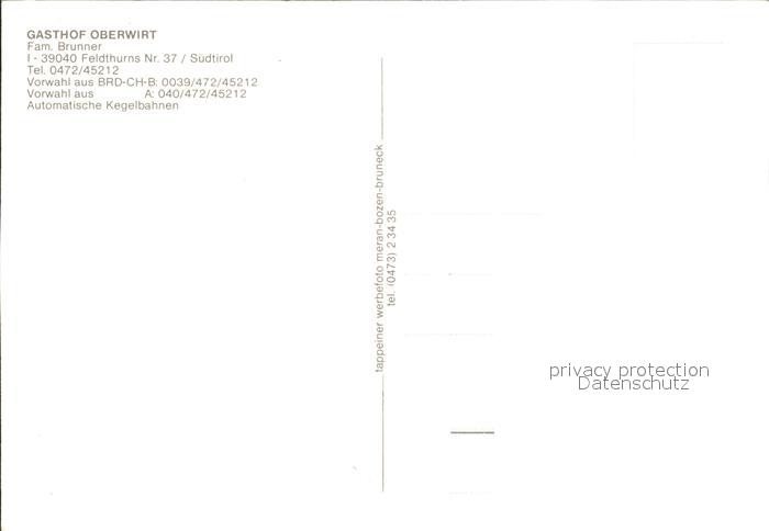 Feldthurns Gasthof Oberwirt Terrasse postalisch nicht gelaufen Erhaltung siehe scans