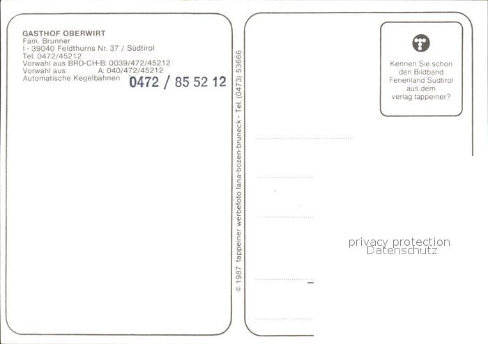 Feldthurns Gasthof Oberwirt postalisch nicht gelaufen Erhaltung siehe scans