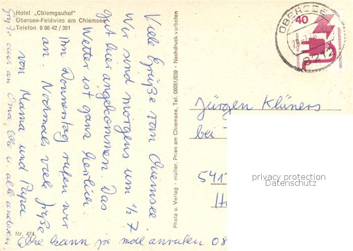 73024553 alte Postkarte Feldwies Hotel Chiemgauhof postalisch gelaufen Erhaltung siehe scans [KathaD81] KatCode: 11110009189159