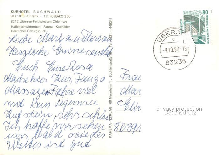 73840660 alte Postkarte Feldwies Kurhotel Buchwald postalisch gelaufen Erhaltung siehe scans [FriedD77] KatCode: 11110009189159