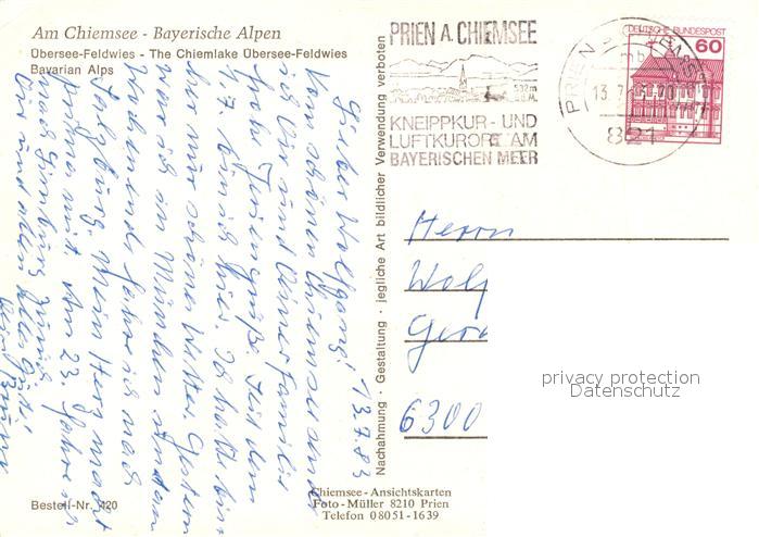 73272356 alte Postkarte Feldwies Panorama Kampenwand Segelboote Kirche Zunftbaum postalisch gelaufen Erhaltung siehe scans [KathaD81] KatCode: 11110009189159