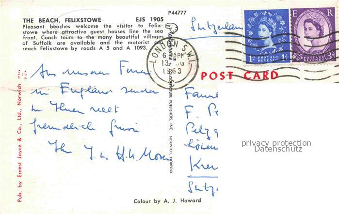 74132608 old postcard FELIXSTOWE Suffolk Coastal UK The beach postalisch gelaufen Erhaltung siehe scans [FriedD77] KatCode: 11570UKH1H14UG