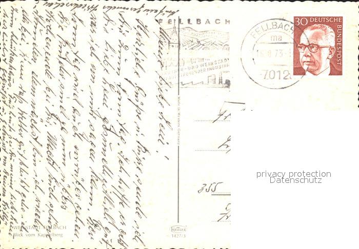 72112896 alte Postkarte Fellbach Blick vom Kapellberg postalisch gelaufen Erhaltung siehe scans KatCode: 11110008119020