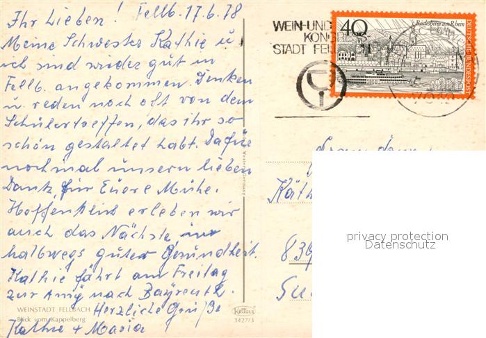 73255527 alte Postkarte Fellbach Blick vom Kappelberg postalisch gelaufen Erhaltung siehe scans [WerneD78] KatCode: 11110008119020