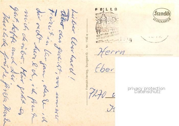 73830671 alte Postkarte Fellbach Panorama Rathaus Kirche Schwimmbad postalisch gelaufen Erhaltung siehe scans [FriedD77] KatCode: 11110008119020