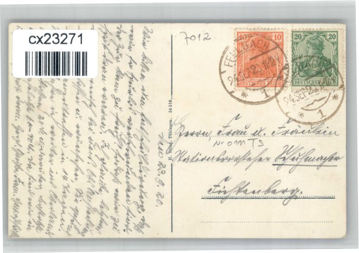30752003 alte Postkarte Fellbach Schule postalisch gelaufen KatCode: 11110008119020