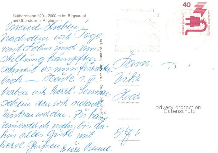 73060074 alte Postkarte Fellhorn Fellhornbahn im Birgsautal postalisch gelaufen Erhaltung siehe scans [FriedD77] KatCode: 11110009780133