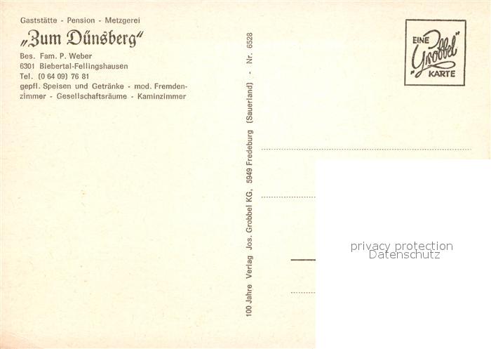 72995719 Fellinghausen Siegerland Gasthof Pension Zum Duensberg postalisch nicht gelaufen Erhaltung siehe scans [AndreD76] KatCode: 11110005970024