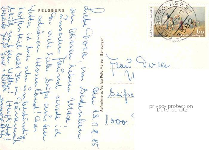 72673832 alte Postkarte Felsberg Hessen Burg postalisch gelaufen Erhaltung siehe scans [AndreD76] KatCode: 11110006634003