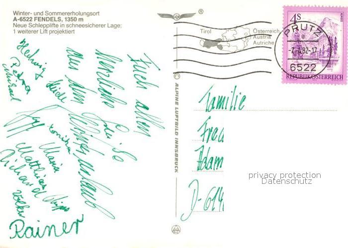 73355304 alte Postkarte Fendels Fliegeraufnahme mit Glockturmgebirge postalisch gelaufen Erhaltung siehe scans [WerneD78] KatCode: 11390334070602