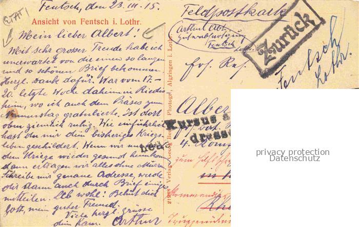 14113697 Fentsch Fontoy Thionville 57 Moselle Panorama Blick ins Tal Feldpost postalisch gelaufen Erhaltung siehe scans [FriedD77] carte postale Frie Katcode 11170057857226