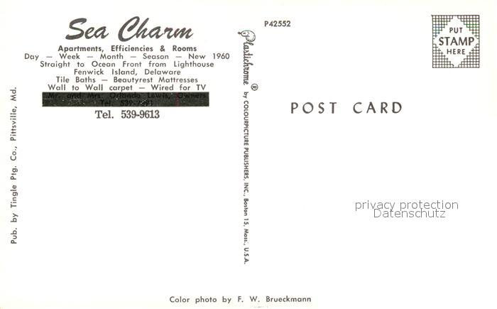 73107896 Fenwick Island Sea Charm Apartments postalisch nicht gelaufen Erhaltung siehe scans [WerneD78] KatCode: 14140080000000