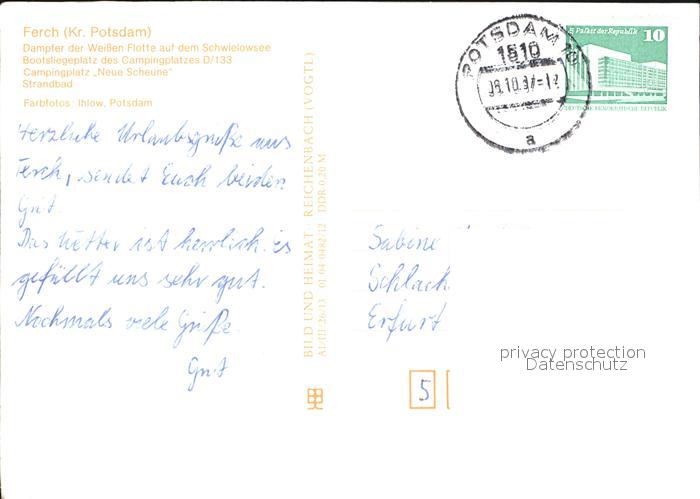 72557247 alte Postkarte Ferch Dampfer Weisse Flotte Schwielowsee Bootsliegeplatz Campingplatz postalisch gelaufen Erhaltung siehe scans [KathaD79] KatCode: 11110012069590