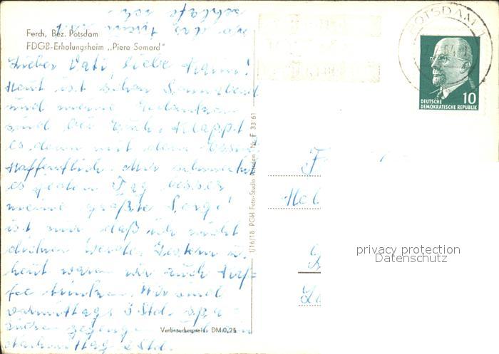 72309590 alte Postkarte Ferch FDGB- Erholungsheim Piere Semard postalisch gelaufen Erhaltung siehe scans KatCode: 11110012069590