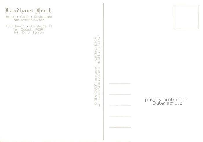 73084480 Ferch Landhaus Ferch Hotel Cafe Restaurant am Schwielowsee Segelboot postalisch nicht gelaufen Erhaltung siehe scans [FriedD77] KatCode: 11110012069590