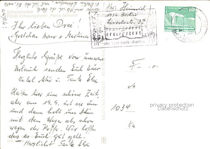 72458858 alte Postkarte Ferch Seglerhafen Badestrand FDGB Erhlungsheim Pierre Semard postalisch gelaufen Erhaltung siehe scans KatCode: 11110012069590