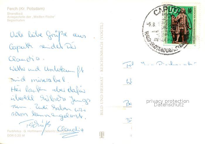 73126750 alte Postkarte Ferch Strandbad Anlegestelle Weisse Flotte Seglerhafen Schwielowsee postalisch gelaufen Erhaltung siehe scans [KathaD81] KatCode: 11110012069590