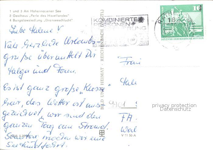 72474698 alte Postkarte Ferchesar Hohennauer See Gasthaus Perle des Havellandes Bungalowsiedlung Dranseeschlucht postalisch gelaufen Erhaltung siehe scans KatCode: 11110012063293