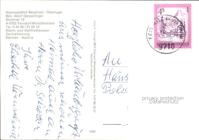 72054683 alte Postkarte Ferndorf Kaernten Millstaettersee Alpengasthof Bergfried Oberluger Kuehe postalisch gelaufen Erhaltung siehe scans KatCode: 11390211020710