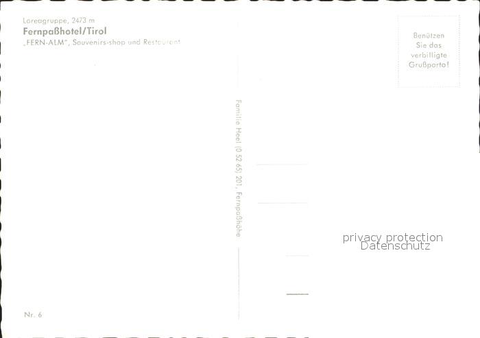 72246872 Fernpass Reutte Fernpasshotel Fernalm Cafe Restaurant Alpen postalisch nicht gelaufen Erhaltung siehe scans KatCode: 11390331070828
