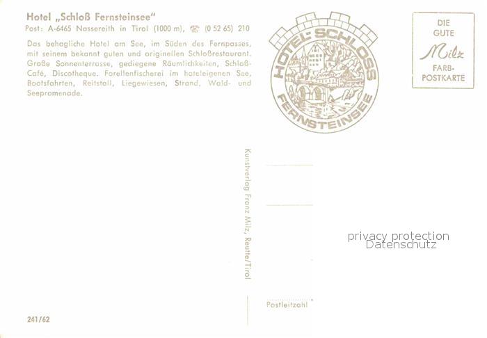 72693502 Fernpass Reutte Schloss Fernsteinsee postalisch nicht gelaufen Erhaltung siehe scans [KathaD79] KatCode: 11390331070828