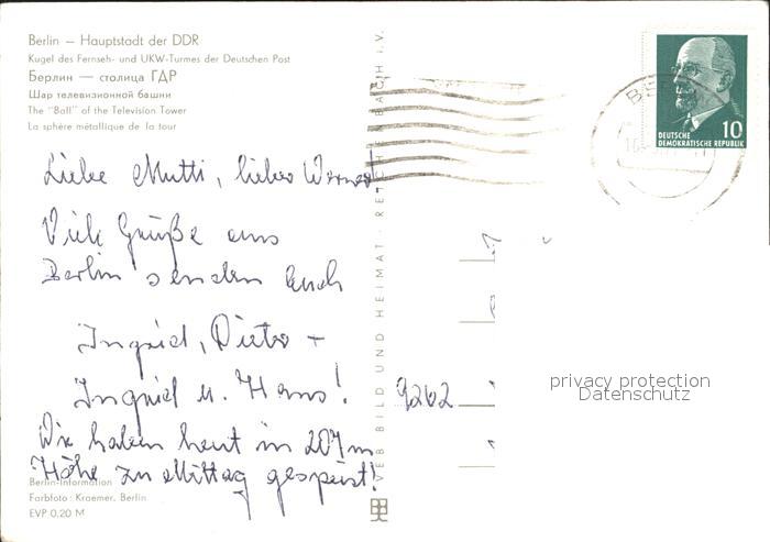 alte Postkarte Fernsehturm Funkturm Kugel UKW-Turm Berlin postalisch gelaufen Erhaltung siehe scans
