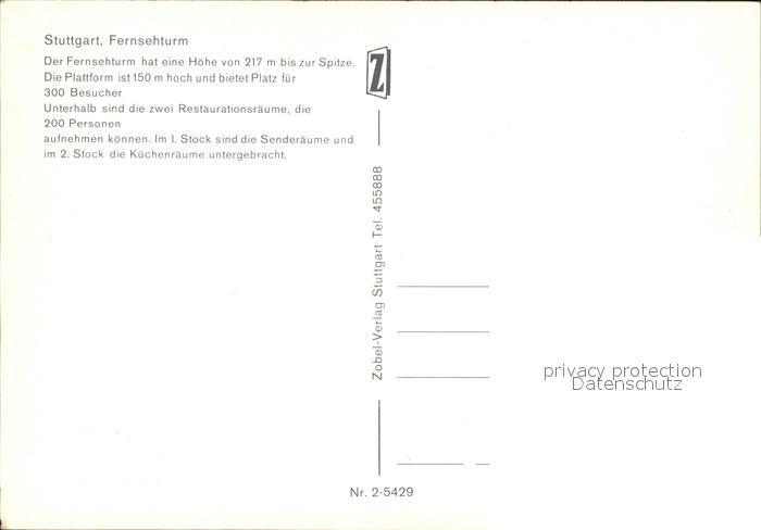 Fernsehturm Funkturm Stuttgart postalisch nicht gelaufen Erhaltung siehe scans