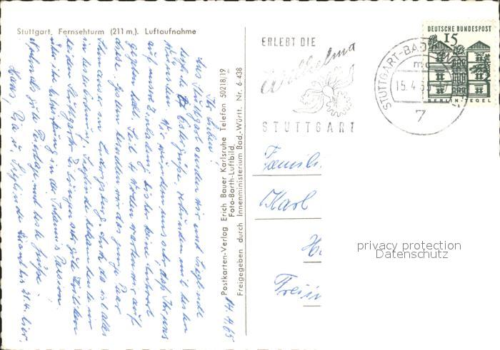alte Postkarte Fernsehturm Funkturm Stuttgart Fliegeraufnahme postalisch gelaufen Erhaltung siehe scans