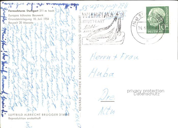alte Postkarte Fernsehturm Funkturm Stuttgart Fliegeraufnahme postalisch gelaufen Erhaltung siehe scans