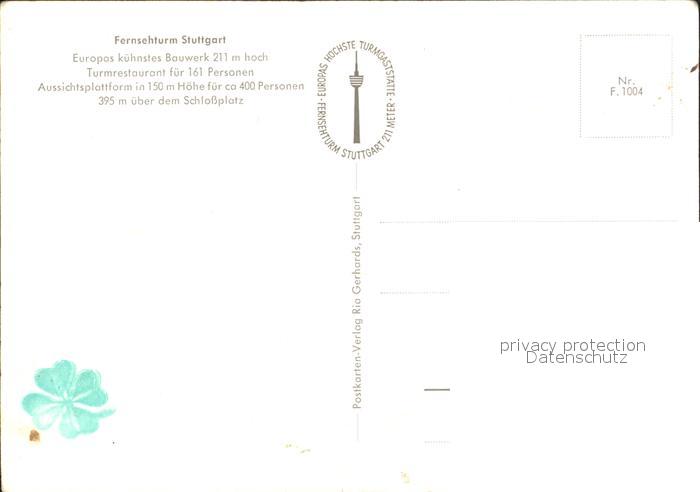 Fernsehturm Funkturm Stuttgart Kuenstlerkarte postalisch nicht gelaufen Erhaltung siehe scans