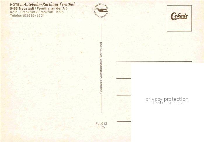 72793245 Fernthal Hotel Autobahn-Raststaette postalisch nicht gelaufen Erhaltung siehe scans [LiesaD40] KatCode: 11110007138044