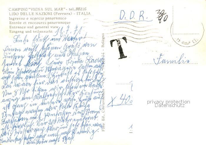 13597974 Ferrara Camping Vigna sul Mar Eingang postalisch gelaufen Erhaltung siehe scans [WerneD78] old postcard Wern Katcode 11240