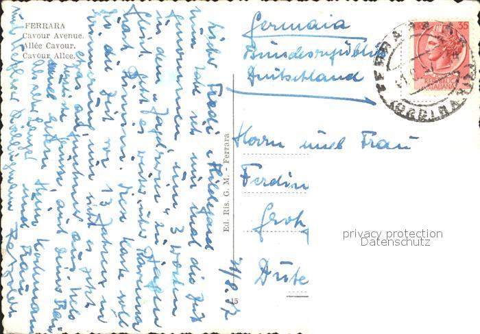 old postcard Ferrara Cavour Allee postalisch gelaufen Erhaltung siehe scans