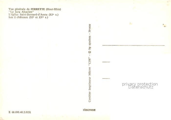 13526172 Ferrette Haut-Rhin Eglise Saint Bernard d Aoste et les 2 Chateaux postalisch nicht gelaufen Erhaltung siehe scans [FriedD77] KatCode: 11170068168090