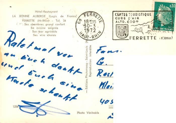 13872707 Ferrette Haut-Rhin La Bonne Auberge So cuisine soignee Son bar agreable Ses vins choisis KatCode 11170068168090