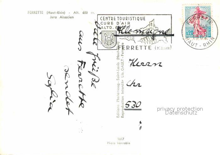 12815416 carte postale Ferrette Haut-Rhin Panorama Jura Alsacien Eglise postalisch gelaufen Erhaltung siehe scans [FriedD77] KatCode: 11170068168090