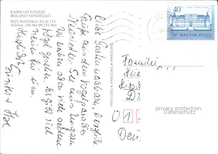 old postcard Fertoerakos Kamillo Panzio Roland Vendegloe Restaurant postalisch gelaufen