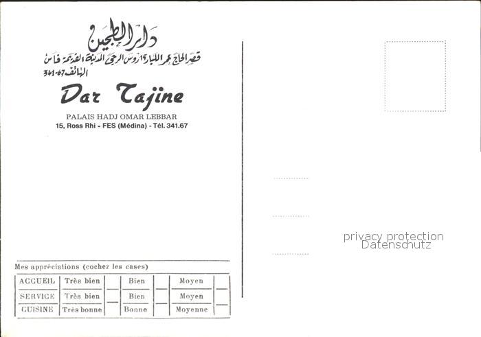 Fes Fez Maroc Dar Tajine Palais Hadj Omar Lebbar postalisch nicht gelaufen Erhaltung siehe scans