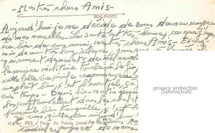 74014895 Fes Fez Maroc Patio du Palais Jamai postalisch nicht gelaufen Erhaltung siehe scans [FriedD77] KatCode: 18300
