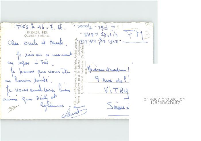 old postcard Fes Fez Maroc Quartier Seffarine postalisch gelaufen Erhaltung siehe scans