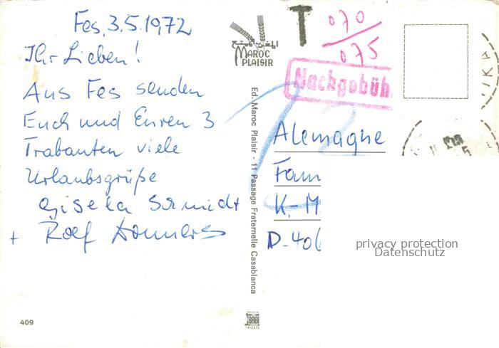 74005629 old postcard Fes Fez Maroc Teppichhaendler Panorama Kastell postalisch gelaufen Erhaltung siehe scans [WerneD78] KatCode: 18300